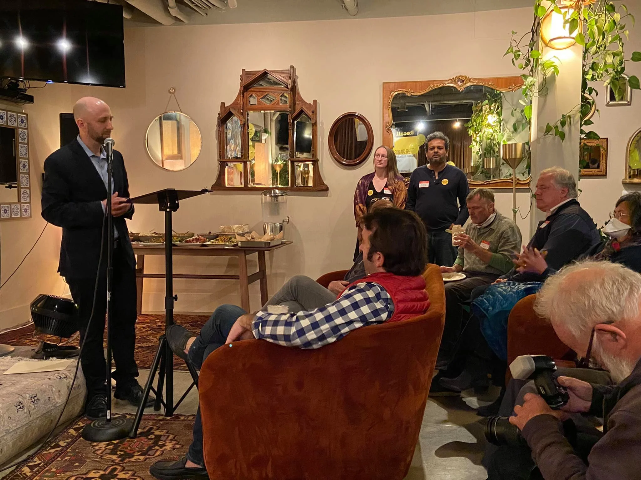 Joel Engardio makes the case for recalling the school board at the campaign launch November 4, 2021.